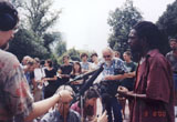 Detailed Synopsis: The press conference held today at the State House steps at 1:15pm was a huge success, as supporters and news media from around Boston converged to hear the speakers talk about their experiences in Philadelphia, issues around the exercise of civil rights and the current attacks on civil liberties, and support work for those still in prison practicing jail solidarity. Turnout was high for lunch time, and camera crews were ubiquitous. Among the speakers were members of the R2K Task Force of the Boston Global Action Network, activists from the Next Movement, City Councillor Chuck Turner representing South End and Roxbury, parents and friends of jailed activists, a lawyer from the National Lawyers Guild, and an activist from the Rainforest Action Network. Taken together, all these voices reflected the diversity of the movement as well as its beautiful unity, built on human solidarity and friendship, respect for human rights, and the courage to stand up for the truth. So love, truth, and courage were on prominent display, demonstrating the activists' code of honor. Since then, WBUR has run a short blurb on the press conference in the afternoon of August 8, and short segments were presented on WBZ 4 and WCVB 5 on the 5:30 and 6:00 pm shows respectively. On August 9, the Boston Herald ran a large article on the rally. Organization for the press conference was amazing, especially since it was first suggested and planning put into action on Saturday, press contacts were made yesterday, and the final list of speakers only readied this morning. People worked on press outreach, the press release, and signs throughout the weekend, while information packets for the press were prepared these last two days. Each of the speakers were also contacted and asked to prepare short statements which they delivered so professionally. Let's keep up the solidarity work. We are learning as we go along, which is in itself impressive, and hopefully this press conference will further put the pressure to get our boys and girls, our friends and loved ones, back home. WE LOVE YOU!!!