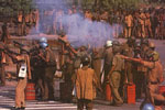 Some Key Events of the 1994 Movement July 1994: Uttarakhandi students begin agitation through civil disobedience (sit down protests, blocking traffic). Initially concerned with the impact of 27 per cent OBC reservations in the hills, the movement spreads throughout Kumaon and Garhwal. August 8, 1994: Uttarakhand Kranti Dal members on hunger strike are arrested by the police. Among the first of many violent episodes, activists resist with stone throwing that elicits a baton charge by the police. August 17, 1994: State Government Chief Minister, Mulayam Singh Yadav makes an anti-hill statement that raises tensions throughout Uttarakhand. The Chief Minister threatens the activists with counter-demonstrations. August 23, 1994: All of Uttarakhand observes a total bandh (shutdown strike). August 31, 1994: Widespread protests are held against the extending of 27 per cent reservation for OBCs to the hill districts. Police tear gas and lathi-charge demonstrators at several places including Dehradun, Mussoorie, Pauri, Nainital, and Pithoragarh. September 1, 1994: On the orders of the local SDM, police open fire on 10,000 rallyists at Khatima in Nainital that lasts for an hour and a half. Three reported killed, four missing, hundreds injured. September 2, 1994: Police fire on demonstrators at Jhulagarh in Mussoorie. Seven people are killed, including the deputy superintendent of police, Mussoorie. September 13, 1994: The Chief Minister of Uttar Pradesh organizes a counter bandh as a demonstration of his power. However, pro-reservationist forces end up sacking the Allahabad High Court, injuring attorneys and the court judge. The state police showed their political allegiances by failing to protect the bar. A CBI probe is launched. October 2, 1994: Responding to a rally called by the Uttarakhand Samyukta Sangharsh Samiti (USSS), nearly 5,000 people begin a journey from Kumaon and Garhwal to New Delhi. The Kumaon buses arrive at the capital safely. Rallyists from Garhwal are stopped by police near Muzaffarnagar, tear-gassed, lathi-charged, and fired upon. The CBI says that [at least] five people were killed and seven women were raped. Several others are assaulted and injured. "..the pre-dawn hours of 2 October were a nightmare for the Garhwali activists, most of them still asleep in their seats. "Hell broke lose at 5:30 am," wrote one reporter who was present. The police, members of the infamous Provincial Armed Constabulary (PAC), chased the Garhwalis towards the sugarcane fields, using tear gas and batons, shooting randomly and molesting women. A kilometre stretch of the road was said to be splattered with blood and broken glass..."