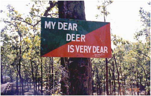A sign at the Malsi Deer Park. Such punitive humour on English language signs can be found throughout India, and especially in the hills.