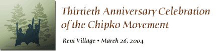 Villages of the Niti Valley commemorate the direct action that saved their community forests and inspired a generation of women to struggle for forest rights in the Indian Himalayas. This 26 March, the villages of the Niti Valley celebrated the thirtieth anniversary of the Chipko Movement. Villagers and guests held a mass meeting in Lata village (Gaura Devi's ancestral home) on the 25th before proceeding to Reni village (Gaura Devi's adopted home) for a mass rally on 26 March. Thirty years ago, twenty-seven women and girls from Reni village led by Gaura Devi saved their communal forest from clear felling, beginning a decade of Chipko direct actions by women throughout the Uttarakhand region. You can also read about the historic role of Gaura Devi in the Chipko Movement as well as messages sent from around the world. The anniversary celebrations were covered by Dainik Jagran [26 March Article | 27 March Article] where much criticism was levied at the government authorities for dominating the celebrations in Reni and not involving local people. Gaura Devi's only son, Chander Singh Rana, and Dhan Singh Rana raised the uncomfortable issues in their address to the assembled guests. Veteran social activist Biju Negi was on hand to file a comprehensive report on the genesis of the anniversary celebrations and how they brought to the fore Chipko's mixed legacy and the ongoing struggle for local resource rights and the future of the Himalayas.