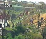 ![]() In Feb 2001, Joburg Metro sent in the "Red Ants" security officers to evict families from the banks of the cholera-infected Jukskei River in Alexandra. Many residents in Alex have no running water. |