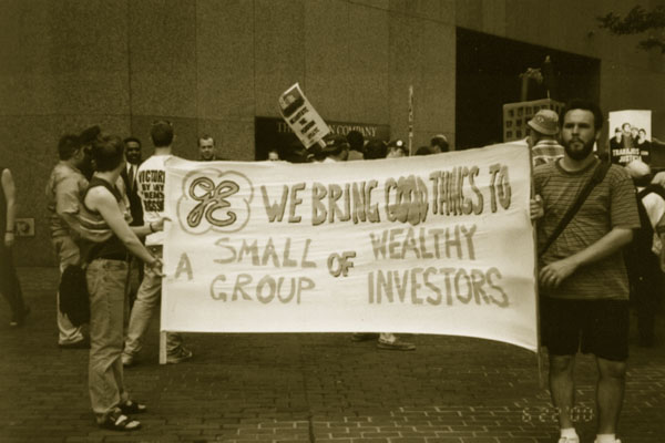 Activists joining the workers sought to highlight the many misdeeds of this global corporation including its dismal environmental record, involvement in the defense industry, and role in nuclear power generation. Moreover, Jack Welch, CEO of General Electric has been a pioneer in corporate-led globalization, coining the menacing phrase "putting every factory on a barge". Under his leadership, GE has downsized its US operations, closed whole plants, shifted manufacturing overseas, and forced workers with their backs against the walls to submit to ever larger cutbacks, speed ups, and weaker job security guarantees.