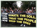 Join ACT UP Philadelphia and Health GAP for a march and rally to send a message to the WTO and Bush Administration: Medication Access for All Event begins at 4:30 pm in NW Washington DC on Thurs Nov 1, location to be announced. For more info, or to sign the Health Before Wealth global petition to the WTO, go to http://www.globaltreatmentaccess.org Why Will We March? Now is a time of re-evalution and reflection on our role in creating a just and safe world. For many of us, the struggle against HIV/AIDS is both a matter of personal survival and a lens through which to view our society's choices that impact people around the world. The daily reality of unfathomable suffering for millions worldwide from the escalating global AIDS crisis fuels instability and chaos. The fight against HIV/AIDS is the fight for a safer and healthier world. We can not remail silent while our government opposes vital reforms to increase access to lifesaving medication for millions worldwide. While many of us in the United States have regained or maintained health through access to medication, we can not live in good faith while our tax dollars are used to deny others life. Rather, we will echo the call of our brothers and sisters fighting for their lives: AIDS drugs for Africa, AIDS drugs for the world! The WTO and Access to Medicine: The November 9-11 meeting of the WTO will be a showdown between US trade czar Robert Zoellick and 35 million people with HIV. Many countries of the world- led by a group of African nations-are working to reform the WTO's patent policies. But U.S. Trade Representative Zoellick is siding with drug companies to block reforms and prop up high monopoly prices. We condemn the efforts of Zoellick to use this time of national tragedy to force through policies that profit drug companies but hurt millions of people with AIDS. And we support legislators refusing to jump on the bandwagon of fast-track legislation in Congress that would give President Bush sweeping authority to sign profit-motivated trade agreements that continue to block access to medicine. At a monopoly cost of around $15,000/year, drugs have helped people with HIV stay alive in whiter, wealthier nations. This is far too much for poor countries to pay. Without patents, generic competition could bring cost down to less than $350. Piecemeal drug donation or "discount" programs keep power in the hands of the monopoly countries without significantly increasing access to treatment for those in need. Our government must not act in our names to insist on patent monopolies for poor countries devastated by HIV, nor hand over power to those who have pledged to expand or uphold lethal intellectual property agreements. Drug companies have nothing to lose from generic competition in poor countries, since almost all of the industry's profits come from just a few rich nations: Africa accounts for only 1.3% of the global drug market. DONATE THE DOLLARS TREAT THE PEOPLE DROP THE DEBT If you are interested in an educational event in your community in the Mid-Atlantic or Northeast Region on global AIDS treatment issues, please contact Julie Davids of the Health GAP Coalition via [email protected]