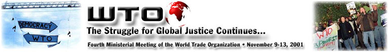Press Conference Contact: Russ Davis: Director, Mass. Jobs With Justice (617) 413-0713 The event, which took place at the foot of the Grand Staircase in the Massachusetts State House at 11:00 a.m., was co-sponsored by the Northeast Labor Committee for Global Justice, a committee of over 60 union locals from around the region formed to protest corporate globalization's disastrous effects on workers and their communities. It coincided with this weekends meeting of financial and corporate elites in far-off Qatar for the WTOs Fourth Ministerial meeting. A similar effort failed to get off the ground after more than 50,000 protesters in Seattle closed down the WTOs "Millennium Round" of negotiations in November, 1999. The coalition of trade unionists, social justice activists, and environmentalists that joined together to protest the WTOs trade policies in 1999, also known as the "Seattle Coalition," is very much intact, according to BGAN. "To paraphrase Twain: rumors of our demise have been greatly exaggerated," said Mike Prokosch, Director of the Global Economy Program at United For a Fair Economy. "We will continue to insist that trade agreements between nations respect labor standards, the environment, and human rights; not free and unfettered policies that promote a race to the bottom and trample on democratic principles." About the sponsors... Northeast Labor Committee on Global Justice is composed of over 60 union locals from around the region formed to protest corporate globalization's disastrous effects on workers and our communities. The Boston Global Action Network is a diverse, non-partisan network of over 20 local, national, and global grassroots organizations working for social justice, the environment, cultural survival, labor and human rights. |